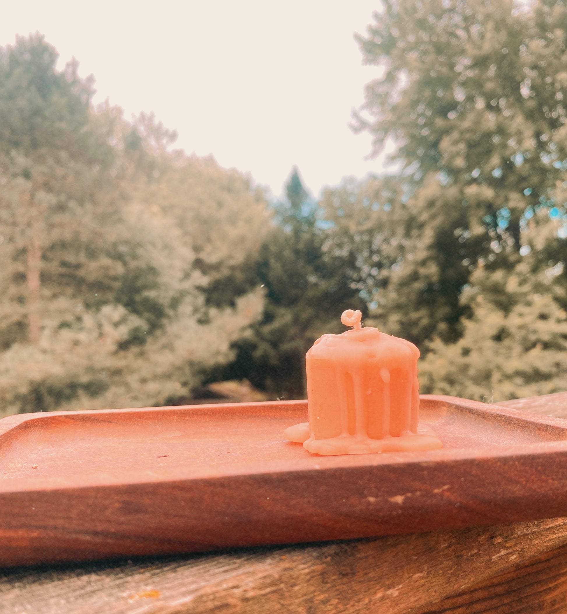 100% Canadian beeswax blended with ceremonial grade rose incense, crowned with a generous rose drip