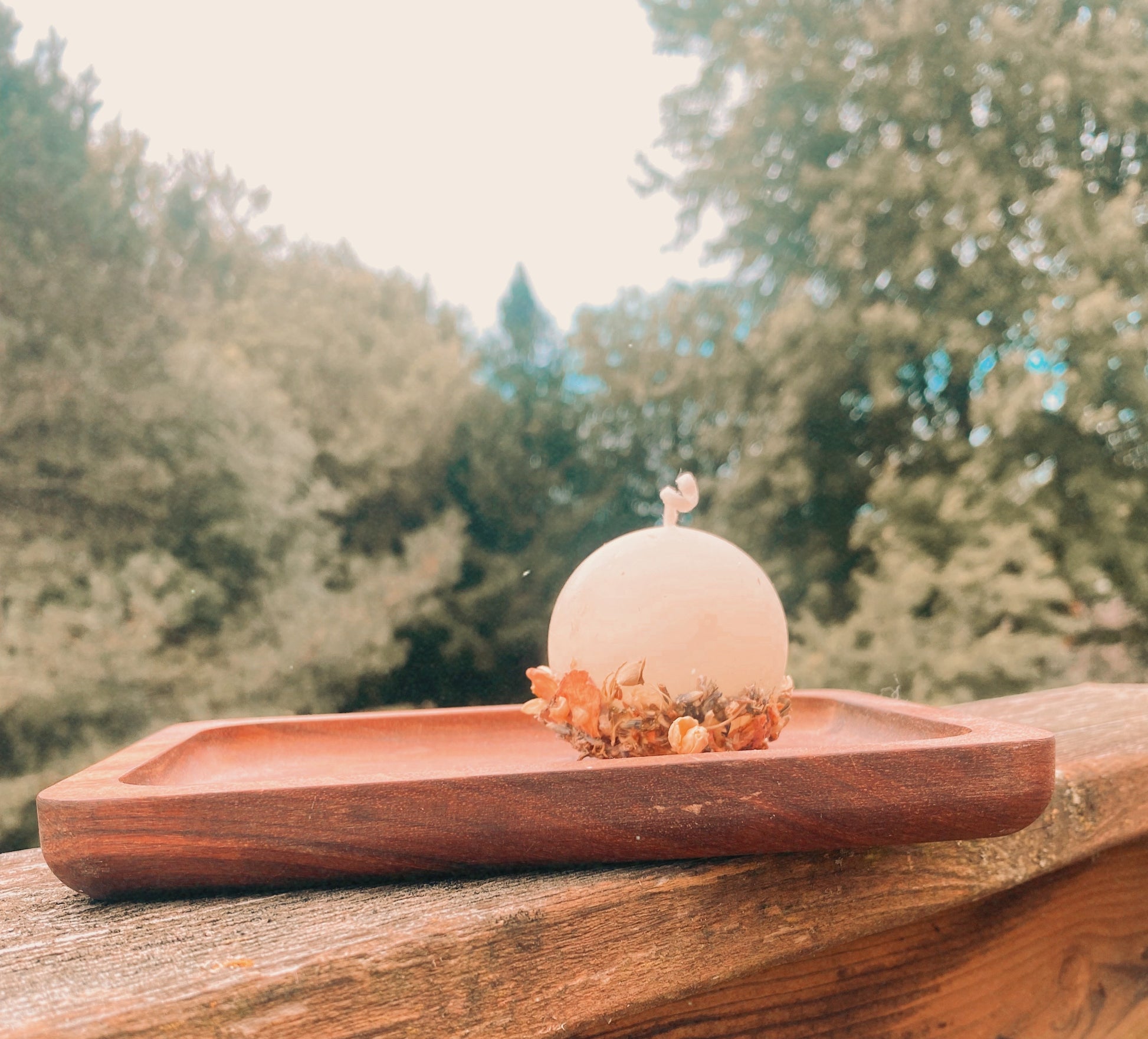 the full moon candle is made from 100% pure white beeswax adorned with dried flowers and herbs from Sacral Steam’s flower power steaming blend
